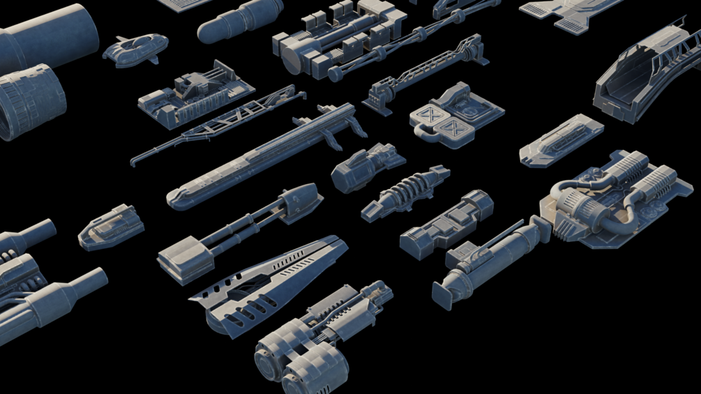 I have not use subsurface on any of these meshes. I have added in an example on using this kitbashing set